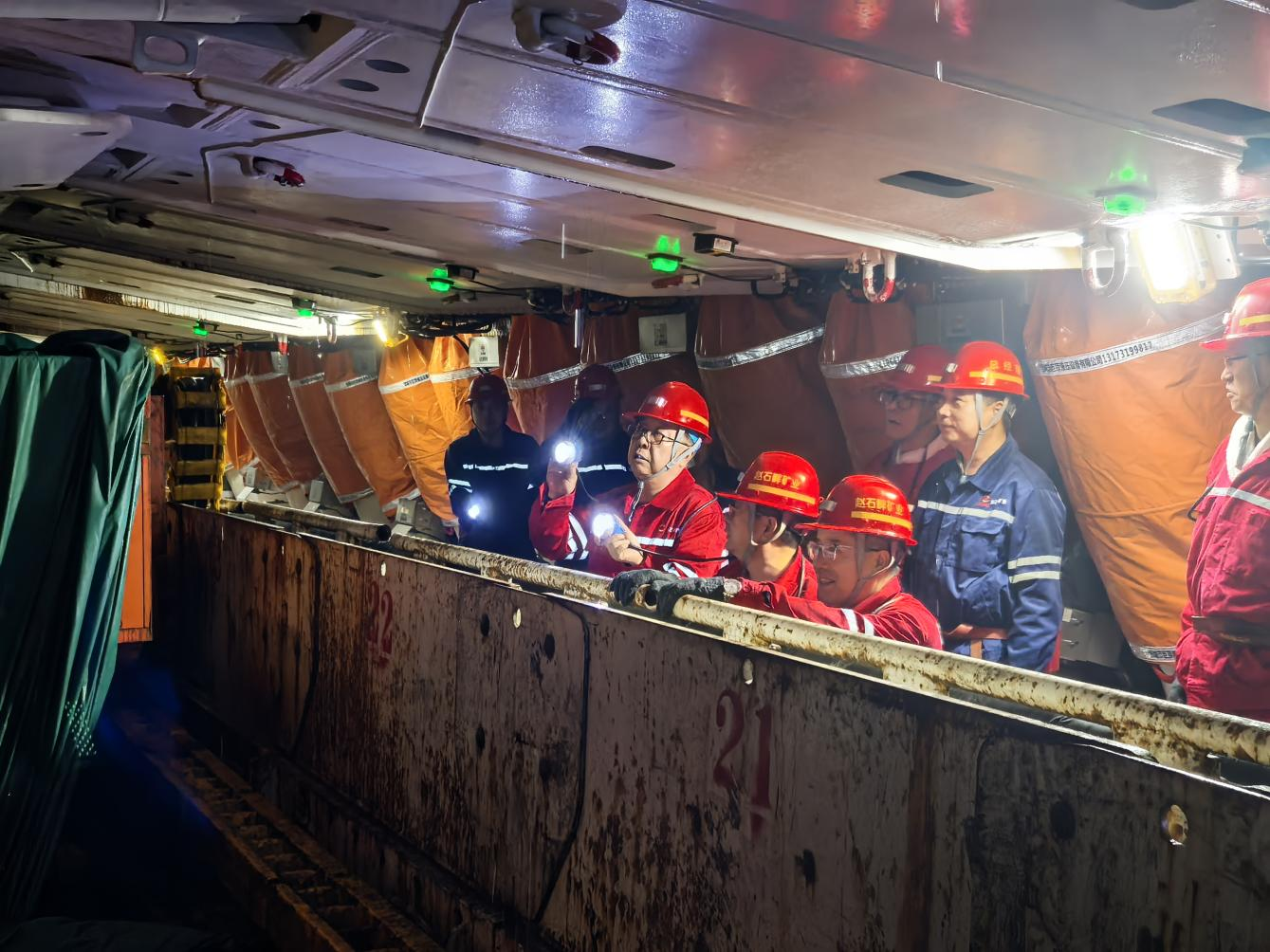 王栋一行深入工业厂区,重点察看赵石畔运营副立井提升系统的安全运行状况,详细了解现场设备参数、系统运维现状,观摩了实际操作流程,并针对隐患排查和优化升级等提出了指导意见。随后,王栋一行深入30101综采工作面,实地了解了采煤机、液压支架、转载机等设备安装调试情况。