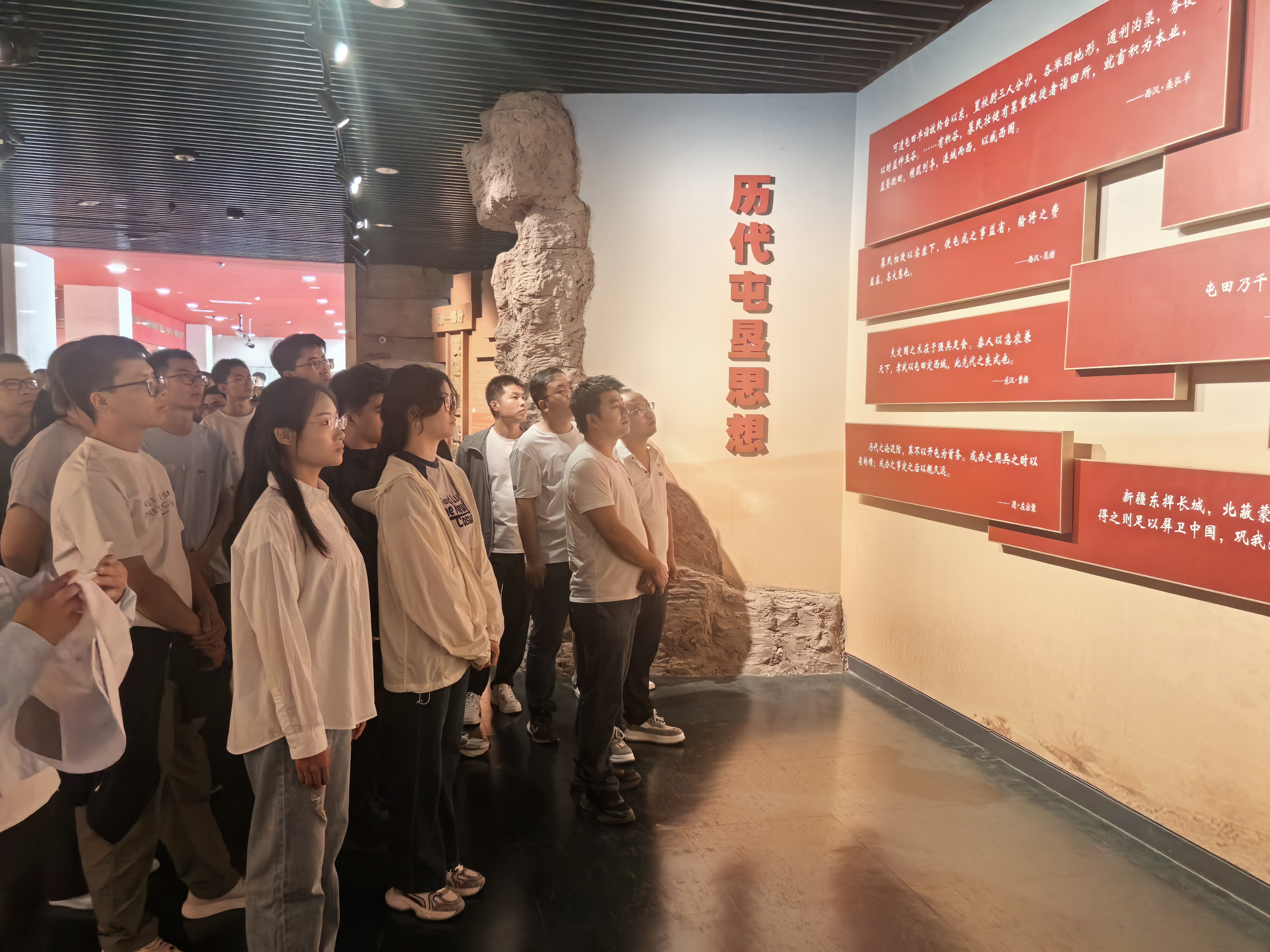 在讲解员的引导下,大家依次参观“屯垦戍边、继往开来”等主题展厅,通过泛黄的军垦日记、锈迹斑斑的坎土曼、简陋的地窝子复原场景等珍贵文物,系统学习新疆生产建设兵团从无到有、由弱到强的奋斗历程。讲解员以“八千湘女上天山”“王震将军率部开垦石河子”等鲜活故事,深刻阐释了“热爱祖国、无私奉献、艰苦创业、开拓进取”的兵团精神与延安精神的内在契合。党员们认真聆听,不时驻足凝视,在军垦先辈的奋斗故事中汲取攻坚克难的精神力量。
