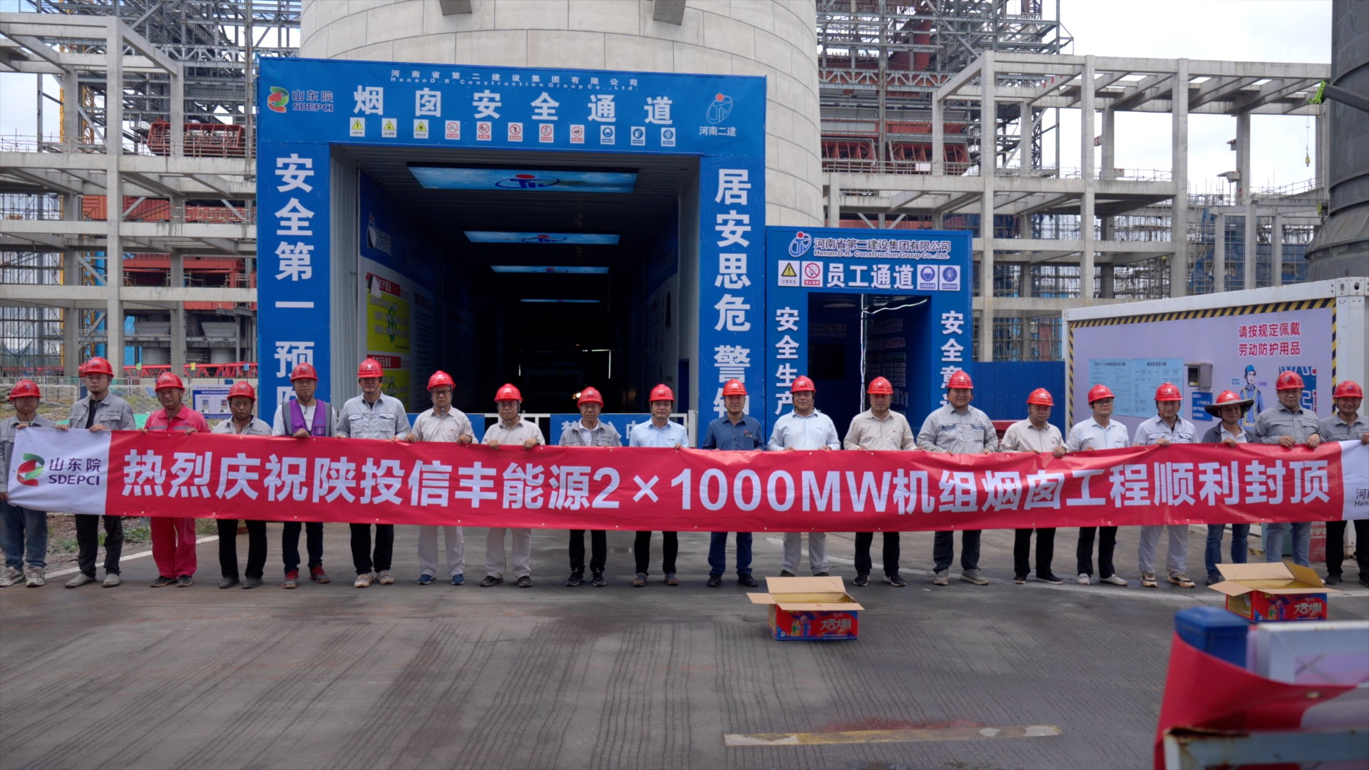 9月20日,陕投信丰能源2×1000MW机组工程烟囱和1号吸收塔壳双双封顶、提前完工。