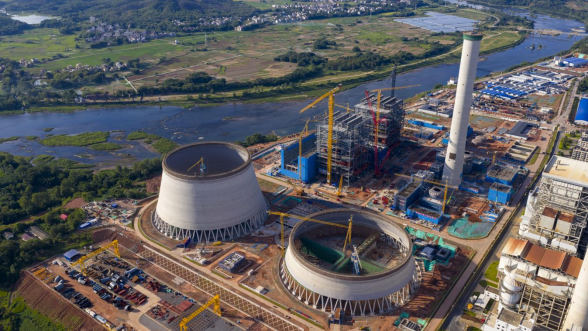 循环水泵房内,施工团队严守“毫米级”精度标准:水泵垂直找正、设备穿装组合等关键工序误差严控在0.05mm内,技术人员手持测量尺与检测表反复比对核验,精准记录每一组数据、逐项确认每一处细节,全力保障设备安装质量;汽机房里,钢屋架吊装作业紧张有序,从吊点精准定位、钢架精准拼接,到焊接环节的焊丝选型、电流精准调控、焊缝规范成型,工作人员全程严格遵循施工标准,每完成一组吊装,立即联动质检人员开展超声波探伤检测,从源头上杜绝质量隐患;冷却塔浇筑现场,班组优化混凝土配比方案,根据昼夜气温变化动态调整浇筑节奏,实行24小时轮班作业机制,实现日均1.5米的稳定推进速度,保障浇筑效率与质量。截至10月1日,项目建设捷报频传:1号循环水泵安装进度超30%,较原计划提前2个百分点;2号汽机房断水施工完成约40%,较节点计划提前7天;冷却塔浇筑高度突破73板,朝着板顶节点稳步靠近。目前,工程各环节衔接顺畅,核心节点均处于可控范围,为后续建设奠定坚实基础。
